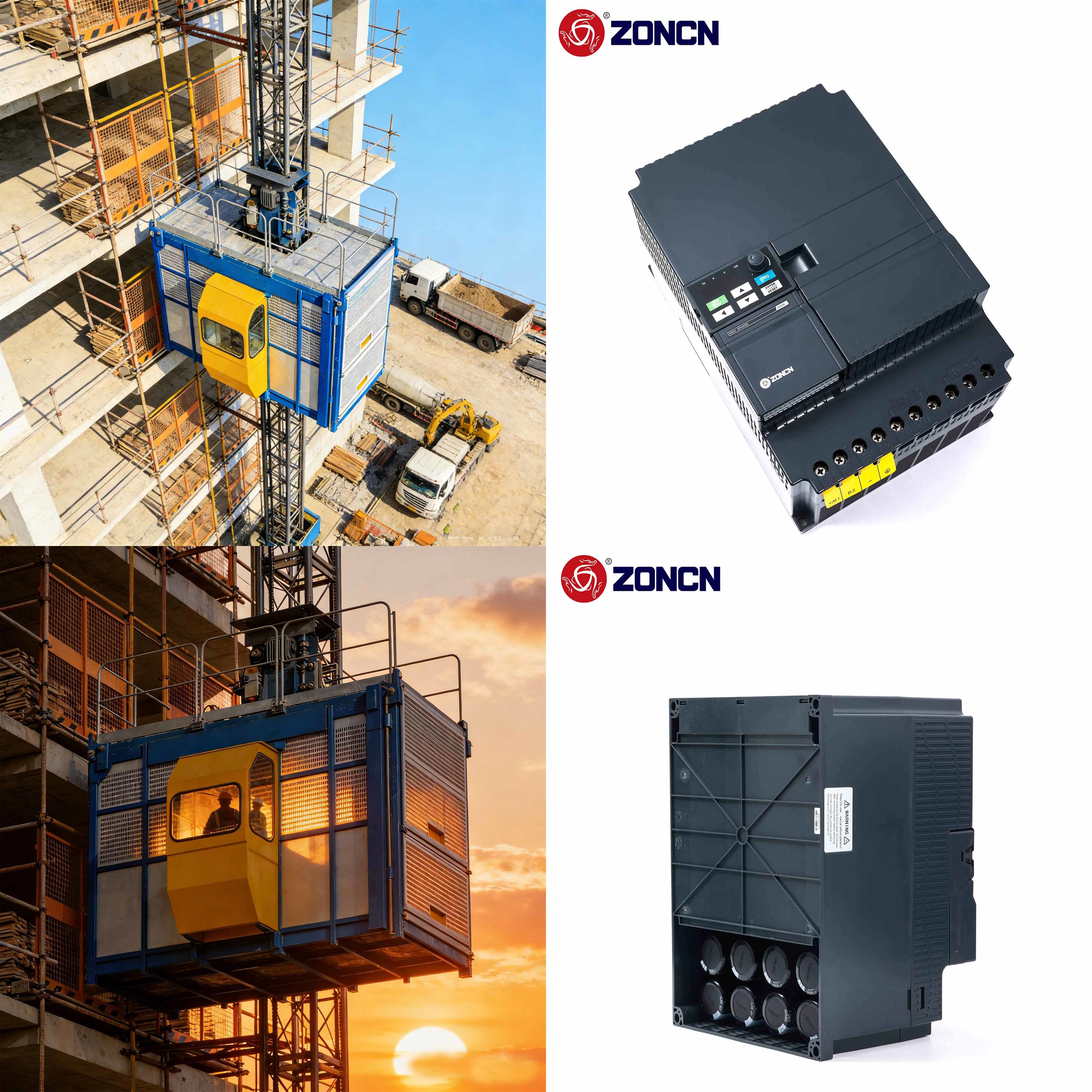 Inwerter ZONCN Z2000 zapewnia podstawową ochronę dla bezpiecznej i stabilnej pracy podnośników budowlanych.umożliwia płynne i bezproblemowe uruchomienie i wyłączenie dźwigniWspierając zarówno układ przyspieszania/spóźnienia w kierunku liniowym, jak i w kierunku krzywej S, falownik precyzyjnie tłumi napięcia prądu podczas uruchamiania i uderzenia inercji podczas zatrzymania.Dzięki temu nie tylko znacząco zwiększa się komfort pasażerów, ale także zmniejsza się zużycie elementów mechanicznych, takich jak zestawy biegów i tarcze hamulcoweW tym samym czasie zapewnia stabilny transport ładunku w celu zapobiegania uszkodzeniom materiału.Inwerter jest wyposażony w wiele mechanizmów ochronyw połączeniu z kontrolą ograniczania prądu szybkiego i ograniczania momentu obrotowegostale monitoruje stan pracy i automatycznie unika awarii spowodowanej nieprawidłowymi warunkami pracyFunkcja "chwilowe przerwanie zasilania" utrzymuje również krótkoterminową pracę urządzeń podczas nagłych przerw w zasilaniu sieci,budowa kompleksowej bariery bezpieczeństwa dla dźwigów budowlanychJest w pełni dostosowany do złożonych warunków pracy w budowie wieżowców, takich jak wysokiej częstotliwości operacji start-stop i dużych wahania obciążeń.